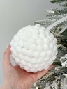 Bella esfera blanca con mini pom pom mide 6" pulgadas de diámetro aproximadamente.
