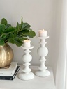 Bello set 2 candelabros el pequeño mide 10.5 pulgadas de alto, el grande mide 13.5 pulgadas de alto aproximadamente.