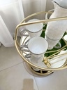 Carrito de servicio de 2 niveles espejado con ruedas, perfecto carrito de café, cocina, para sala de estar, fiesta, bar. Mide 28 pulgadas de alto x 14.5 de diámetro, es de metal color dorado y espejo, muy práctico.
