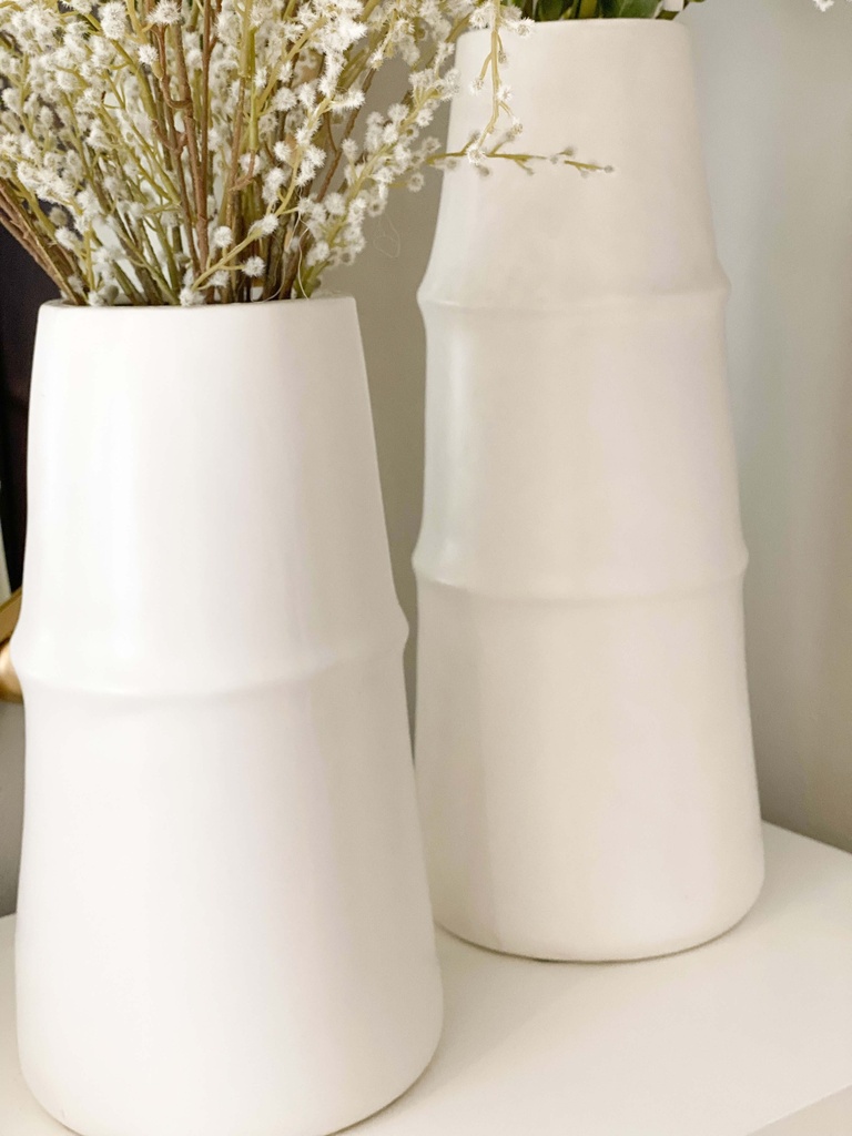 Bases altas de cerámica, la pequeña tiene un anillo y la grande 2 perfectas para flores naturales o artificiales.