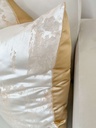 Bello y elegante con sus tonos en crema y dorado mide 22x22 pulgadas, perfecto para cualquier espacio incluye relleno nube su forro se quita para lavar le recomendamos lavar en el dryclean.