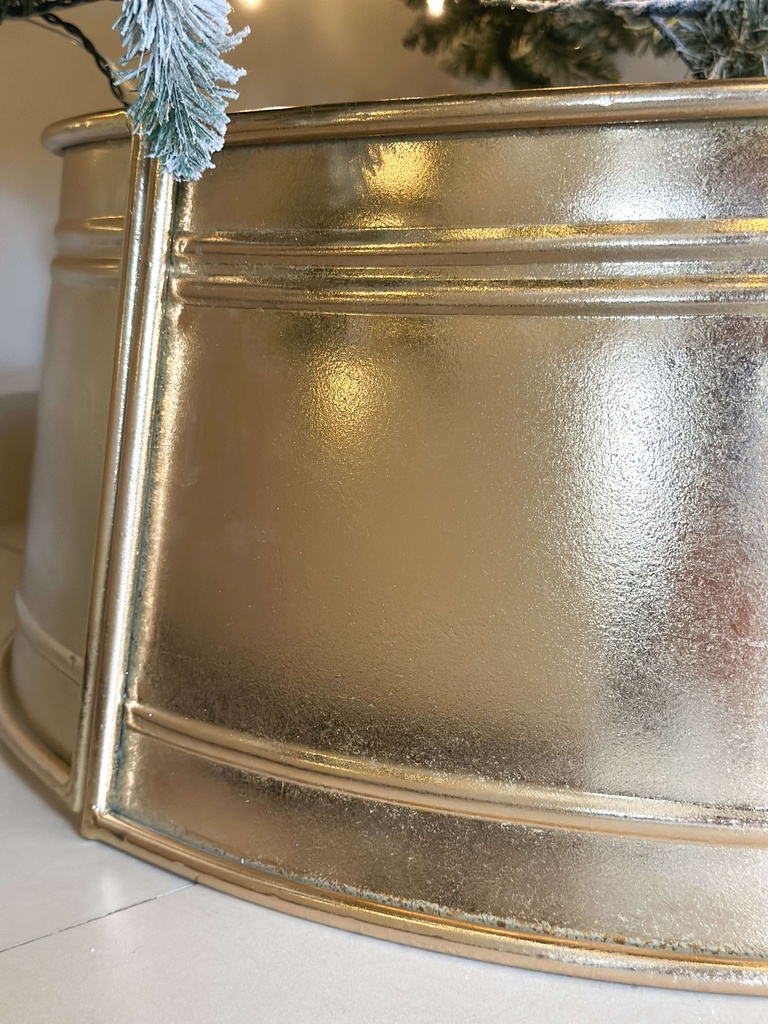 Bello collar o base para arbol navideño, con un dorado hermoso mide 24.5 pulgadas x 28 pulgadas aproximadamente.